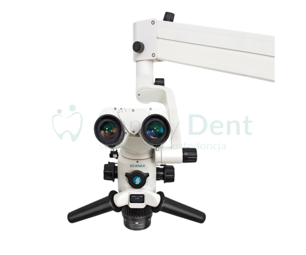 W naszym gabinecie pracujemy z mikroskopem zabiegowym firmy Calipso, który umożliwia wyjątkowo precyzyjne leczenie stomatologiczne. Dzięki znacznemu powiększeniu i doskonałemu oświetleniu pola zabiegowego jesteśmy w stanie dostrzec detale niewidoczne gołym okiem. Mikroskop znajduje szczególne zastosowanie w endodoncji (leczeniu kanałowym), umożliwiając dokładne oczyszczenie i wypełnienie kanałów, co przekłada się na skuteczność i trwałość leczenia.