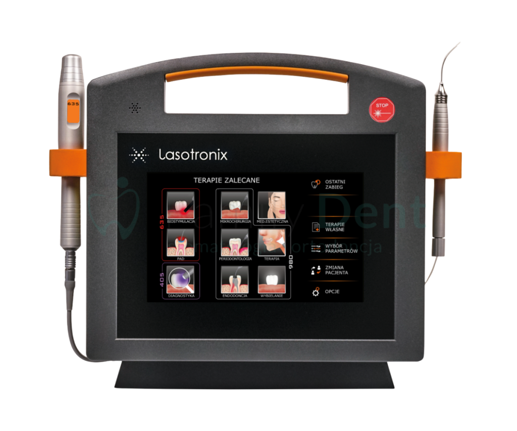 W naszym gabinecie wykorzystujemy laser stomatologiczny firmy Lasotronix, który pozwala na bezpieczne, precyzyjne i niemal bezbolesne przeprowadzanie wielu zabiegów, m.in. w leczeniu przyzębia, chirurgii oraz endodoncji. W chirurgii laser stosujemy do wycinania wędzidełka wargi lub języka, usuwania zmian błony śluzowej oraz odsłaniania zębów zatrzymanych. Ponadto wykorzystujemy go do wybielania zębów metodą laserową oraz wspomagania gojenia po zabiegach. Laser znacząco skraca czas rekonwalescencji i poprawia komfort pacjenta.